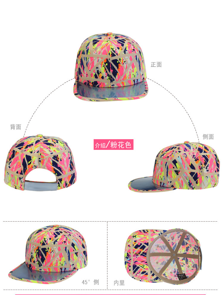 帽子春夏女新款真彩印花料嘻哈帽韩版平沿帽户外时尚遮阳帽街舞帽