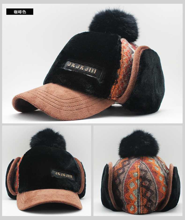 棒球帽新款冬季保暖护耳帽韩版东北滑雪加绒加厚加毛球帽厂家直销